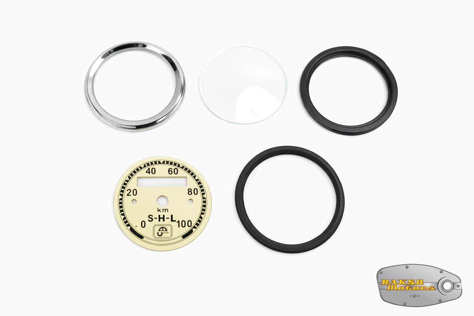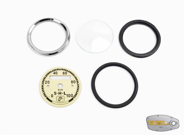 ZESTAW NAPRAWCZY LICZNIKA PRĘDKOŚCIOMIERZA SHL 100 KM/H KREMOWY (CYFERBLAT RAMKA SZKŁO USZCZELKA) - 17768