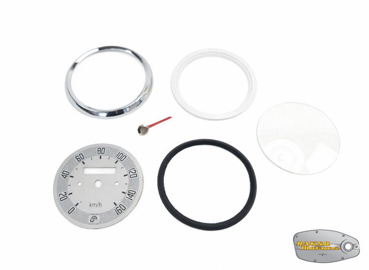 ZESTAW NAPRAWCZY LICZNIKA PRĘDKOŚCIOMIERZA JUNAK M07 M10 SHL M17 GAZELA SREBRNY 160 KM/H (SZKŁO, CYFERBLAT, RAMKA, USZCZELKA, PODKŁADKA, WSKAZÓWKA) - 17774