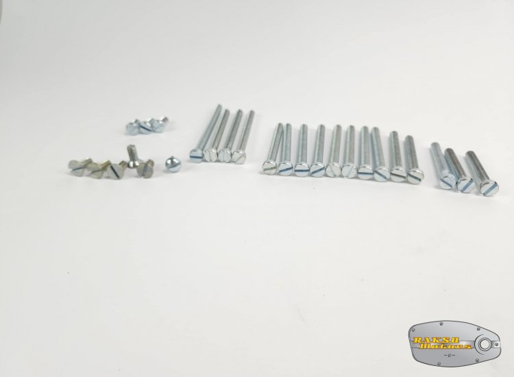 Komplet liczy razem 27 śrub w tym 5 szt wkrętów specjalnych stożkowych do mocowania dekielka simmeringu 1 szt wkręt specjalny z łbek kulistym do kontrolki oleju.